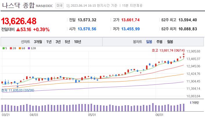 7월 금리인상은 데이터를 보고 결정하겠다고 하며 비둘기적인 뉘앙스를 풍기면서 나스닥, S&P500 지수는 소폭 상승 마감하였습니다.