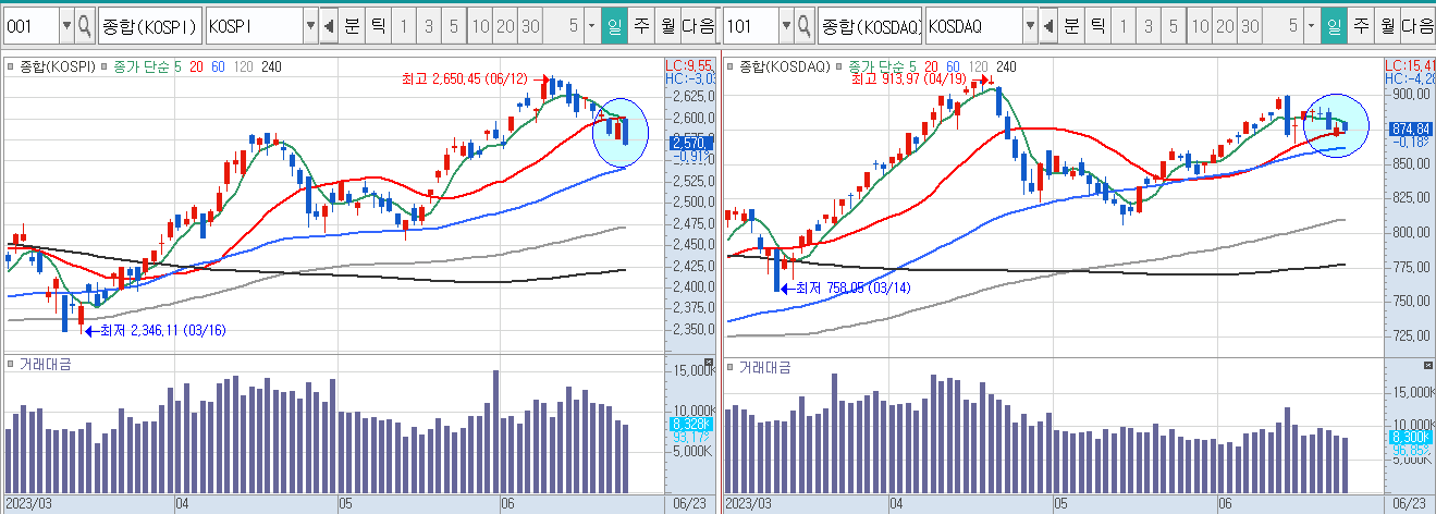 하락이든 반등이든 변화가 시작되는 첫 단추이자 기준은 항상 5일 이평선으로 보시면 좋습니다.
